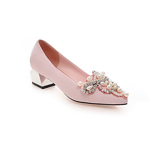 Best Seller! BalaMasa Girls Studded Rhinestones Heel Pull-On Pink Imitated Suede Pumps-Shoes - 5.5 UK Review