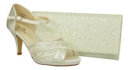 Best Seller! Chic Feet Ladies New Ivory Satin & Lace Wedding Bridal Bridesmaid Prom Party Evening Mid Heel Vintage Inspired Sandals & Matching Bag - UK Size 6 Review