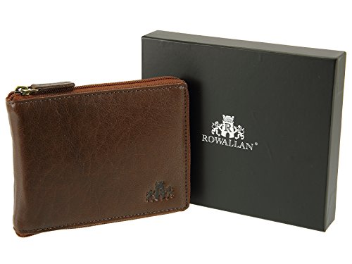 Best Seller! Rowallan Gents Mens Zip Round Three Page Luxury Veg Tanned Buffalo Leather Wallet - Cognac Review