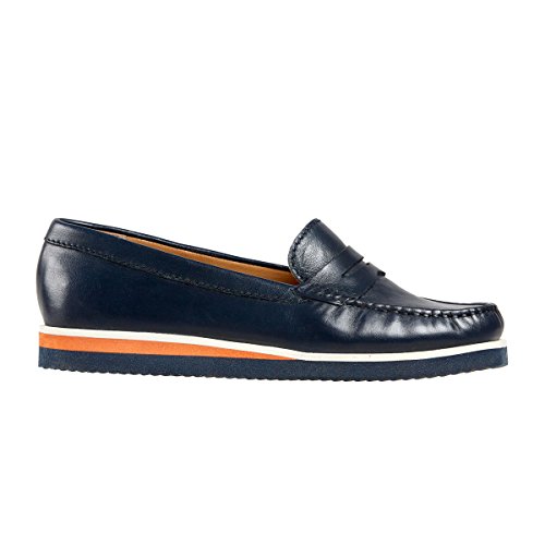 The Van Dal Heywood loafer features our new super lightweight EVA midsole with a fantastic pop of colour. Comfy, flexible and a fresh take on a classic penny loafer, Heywood is available in this classic navy leather with orange stripe.